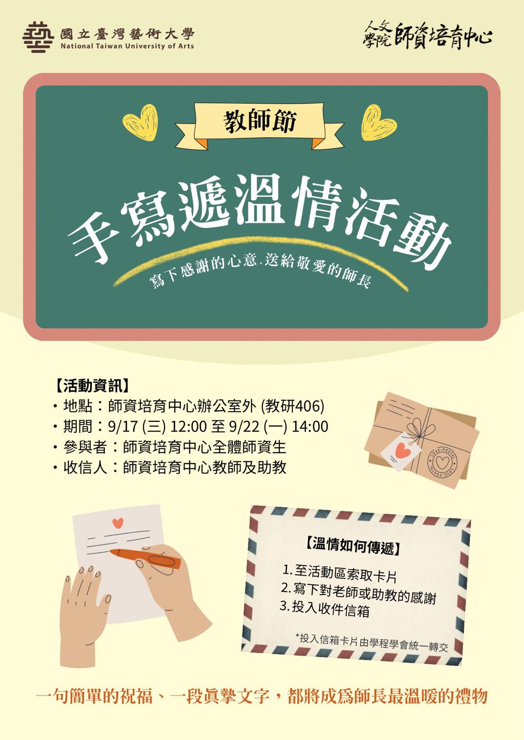 中小學師資生學生會辦理敬師節卡片傳情活動